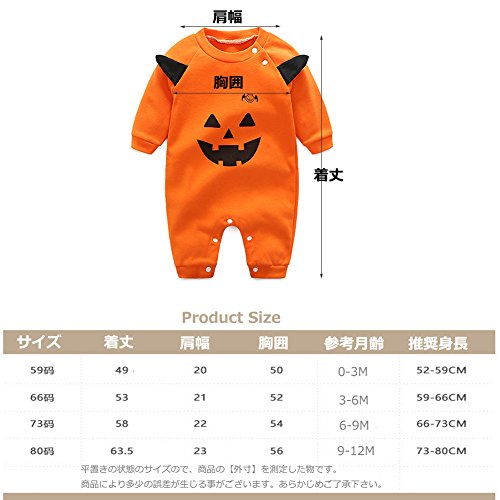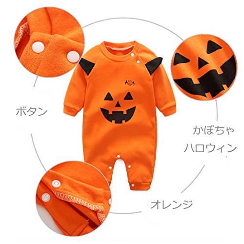 エルフ ベビー(Fairy Baby)かぼちゃ着ぐるみロンパース ベビーつなぎ 長袖 ハロウィン(59, オレンジ)