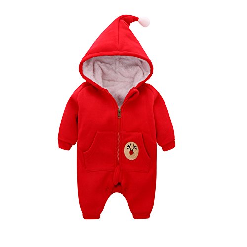 エルフ ベビー(Fairy Baby)ロンパース ベビー服 フード付き 麋柄ジャンプスーツ 秋冬防寒着 66 レッド