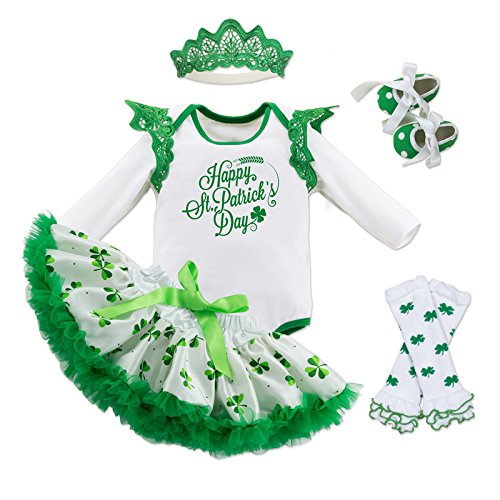 ※聖パトリックの祝日 ベビーロンパース+チュチュスカート+靴+レッグウォーマー+ヘアバンド 5点セット