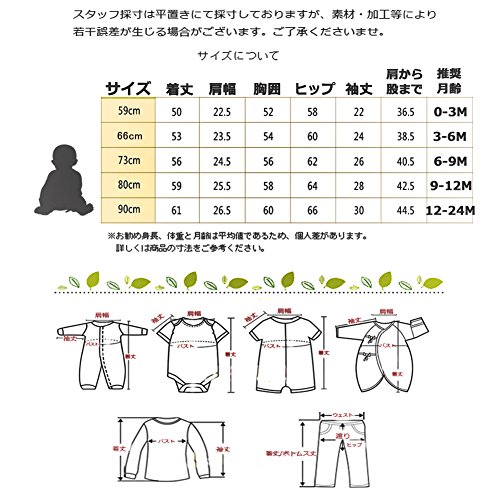- 肩でスナップボタン式、着せやすく、股スナップボタン留め、オムツ替え簡単。