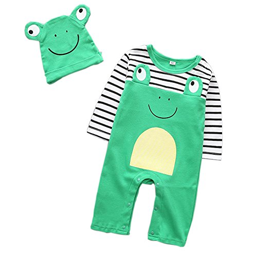 エルフ ベビー(Fairy Baby) ベビー服 カバーオールロンパース 帽子 肩開き 長袖 出産祝い (73CM, かえる模様)