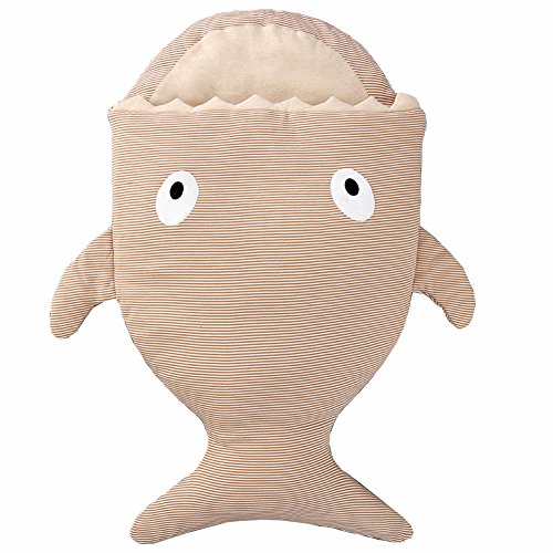 エルフ ベビー(Fairy Baby)オーガニックコットンベビースリーパー 赤ちゃんおくるみ 布団 秋冬 寝冷え防止 90cm 可愛いサメ模様 (カーキ、ストライプ)