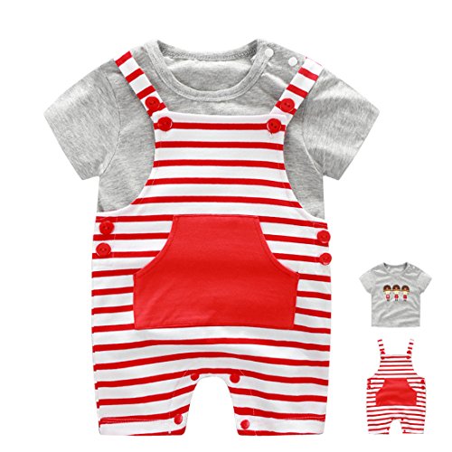 エルフ ベビー(Fairy Baby)ベビー服セット スーツ 半袖Tジャツ サスペンダー付きパンツ 可愛い(レッドストライプ、サイズ80)
