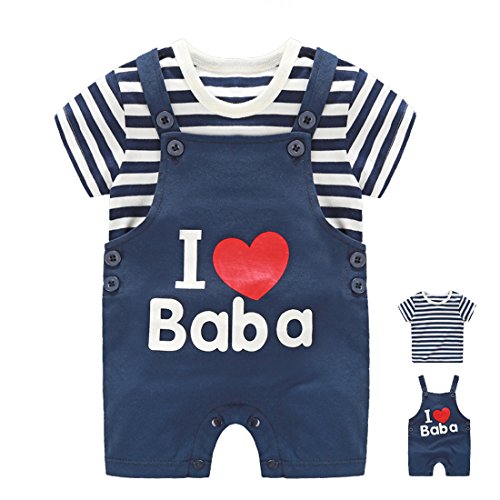 エルフ ベビー(Fairy Baby)ベビー服セット スーツ 半袖Tジャツ サスペンダー付きパンツ 可愛い(ブルーパパ、サイズ80)