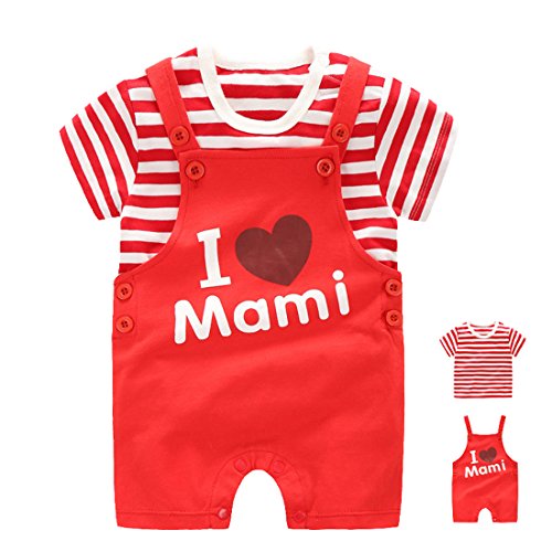 エルフ ベビー(Fairy Baby)ベビー服セット スーツ 半袖Tジャツ サスペンダー付きパンツ 可愛い(レッドママ、サイズ66)