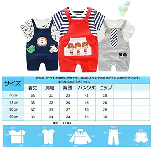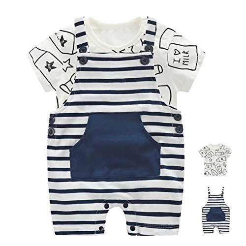 エルフ ベビー(Fairy Baby)ベビー服セット スーツ 半袖Tジャツ サスペンダー付きパンツ 可愛い(紺色ストライプ、サイズ80)
