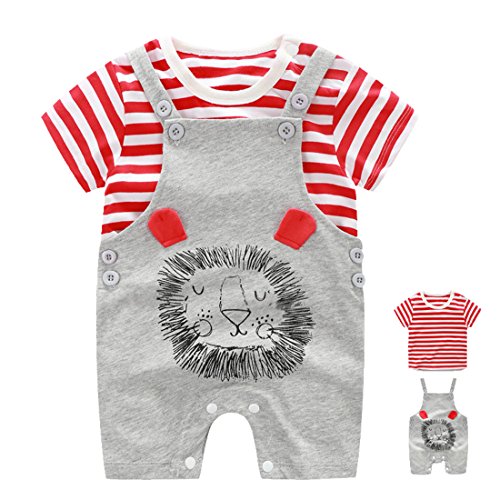 エルフ ベビー(Fairy Baby)ベビー服セット スーツ 半袖Tジャツ サスペンダー付きパンツ 可愛い(グレー 獅子模様、サイズ80)