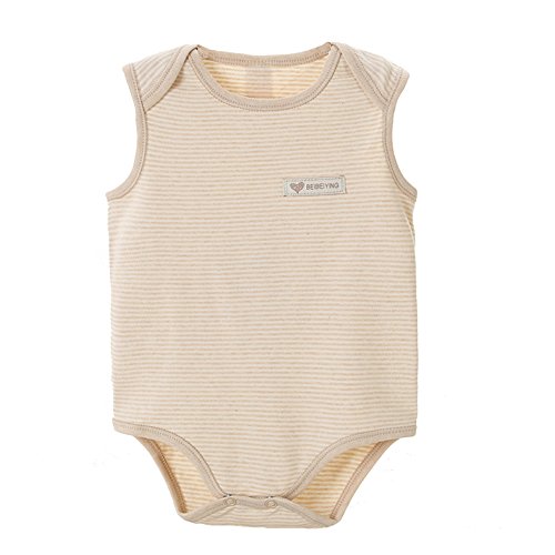 エルフ ベビー(Fairy Baby)楽しい夏ベビー袖なし ボディスーツ オーガニックコットン ノースリーブオール 80cm カーキ ストライプ