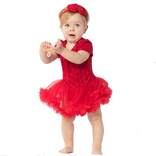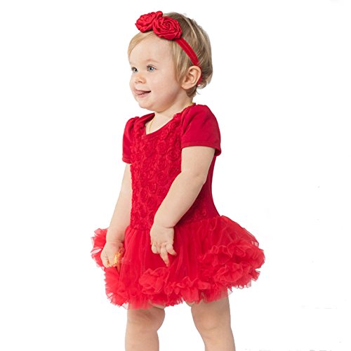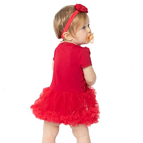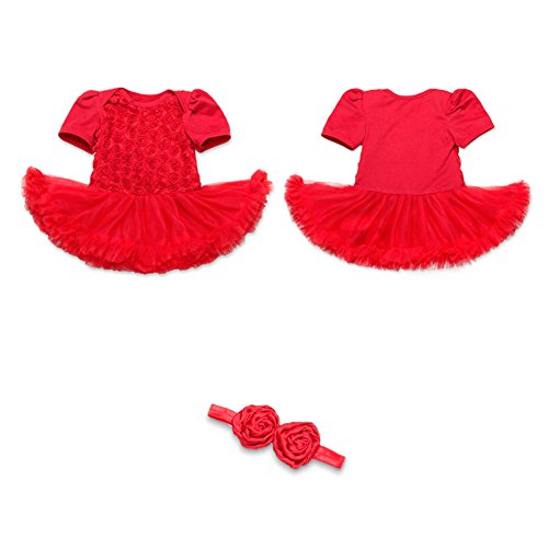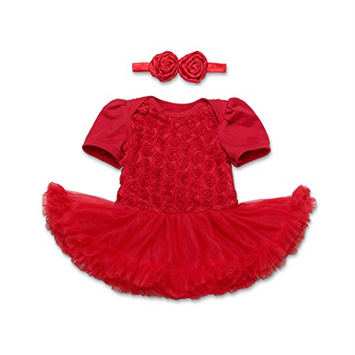 エルフ ベビー(Fairy Baby)ベビーワンピース女の子ドレス チュチュスカート バラ柄ヘアバンド size 73cm(6-12M) (レッド)