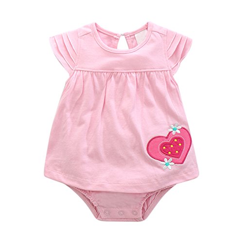 エルフ ベビー(Fairy Baby)ベビー服 ワンピース 半袖 夏用ロンパース 女の子 可愛い心柄 ピンク 6M