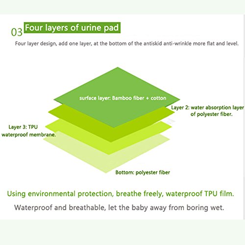お出かけや車中やベッドのおむつ替えにとっても便利。サイズ(40*30cm)で、多く快適な材料が含まれて、技術はとても良くて、高分子吸収材の安全性は十分に確認されています。触って柔らかく、着心地がいい、健康になって、吸収性がもっと強い。バンブー素材の優れた7つの特徴。1、吸収性は綿の3倍、速乾性抜群 2、シルクのようななめらか素材。3、天然のUV効果。4、天然の抗菌作用と消臭効果。5、遠赤外線効果で天然のあたたかみ。 6、静電気がほとんど発生せず、お肌に優しいです。7、肌面は、ふわふわの竹布タオル生地は吸収帯として、速乾性、吸収力のよいマイクロファイバー生地。表生地は肌触りが良く吸水性に優れた綿タオル生地を使用しています。高速吸収し、すべての漏れの保護を提供できる。防水で通気性あり、柔らかで赤ちゃんが快適に眠ります。折りたためて持ち運びにも便利です。シートの中間には防水加工があるので、安心して使用していただけます。このおむつは洗って何度でも使えるから紙パンツよりも経済的 。