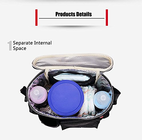 - 大容量:950gミルク缶、二つの哺乳びん、赤ちゃんの服、おむつ、濡れたタオル、携帯電話などすべて入れることができる。