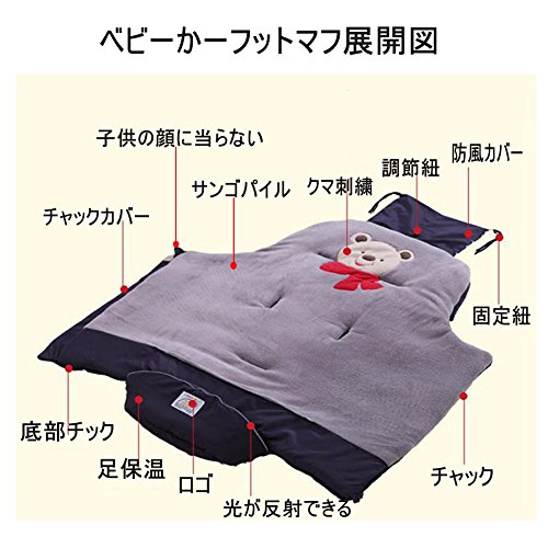 - ふかふかコーラルフリースで、赤ちゃんの足元はいつも暖か、ひもを引っ張るだけでフードに変身、撥水加工で雨や雪の日も安心