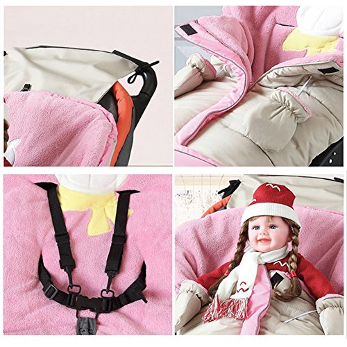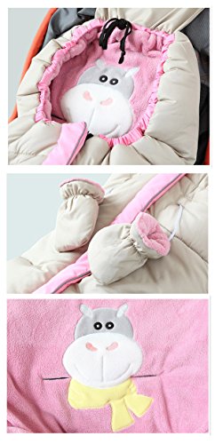 - ふかふかコーラルフリースで、赤ちゃんの足元はいつも暖か、ひもを引っ張るだけでフードに変身、撥水加工で雨や雪の日も安心