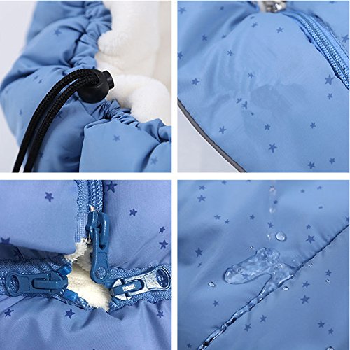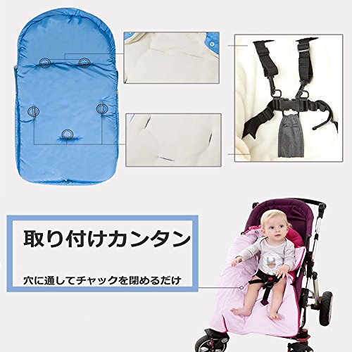 - ふかふかコーラルフリースで、赤ちゃんの足元はいつも暖か、ひもを引っ張るだけでフードに変身、撥水加工で雨や雪の日も安心