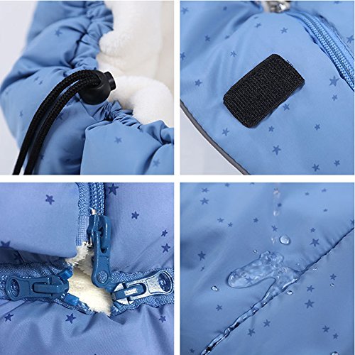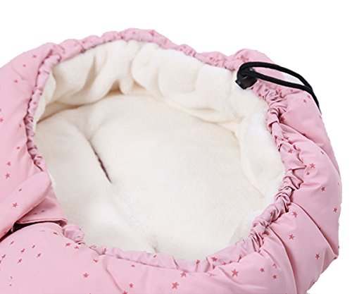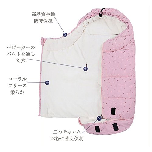 - ふかふかコーラルフリースで、赤ちゃんの足元はいつも暖か、ひもを引っ張るだけでフードに変身、撥水加工で雨や雪の日も安心