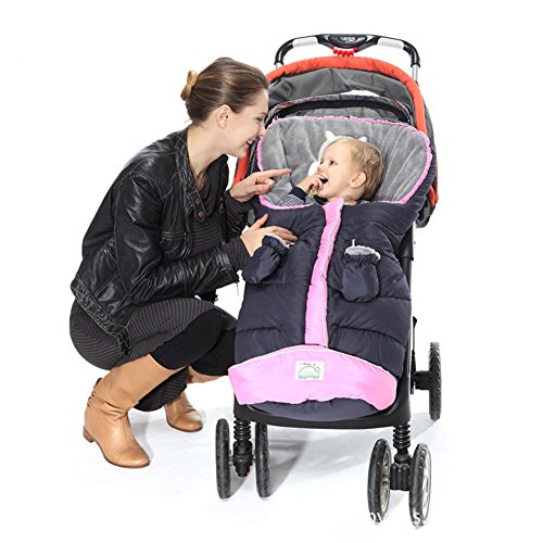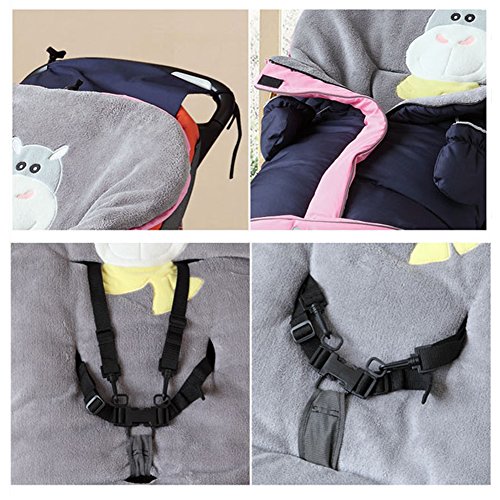 - ふかふかコーラルフリースで、赤ちゃんの足元はいつも暖か、ひもを引っ張るだけでフードに変身、撥水加工で雨や雪の日も安心