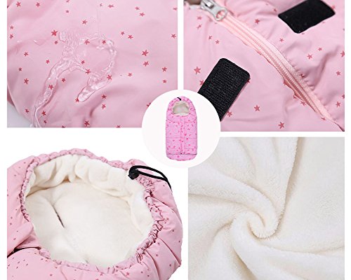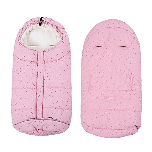 - ふかふかコーラルフリースで、赤ちゃんの足元はいつも暖か、ひもを引っ張るだけでフードに変身、撥水加工で雨や雪の日も安心
