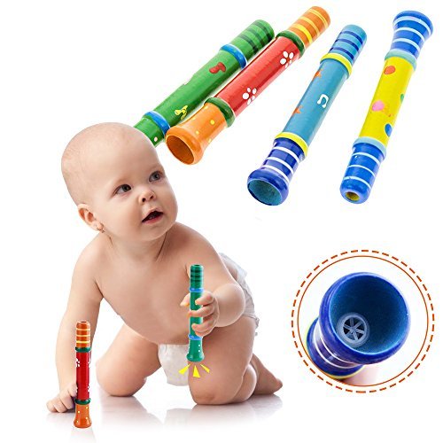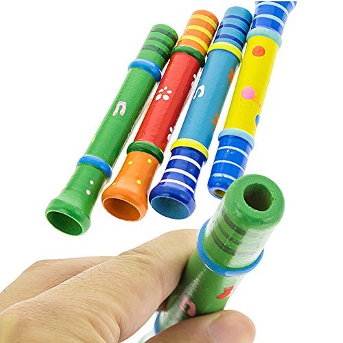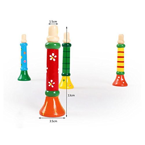 4 Piece Random Color Colorful Wooden Trumpet Buglet Hooter Bugle Educational Toys For Kids Children Toy Musical Instrument,Quality Wood Toys Gift for Boys Girls by Rainbowkids