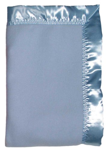 100% polyester Fleece Crib Blanket with embroidered satin edge Blue