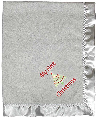 Embroidered my first christmas anti-pill polar fleece;2 satin edge trimmed with embroidery;Unisex: for girls or boys