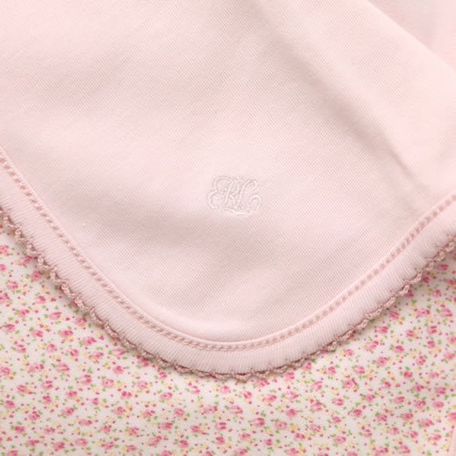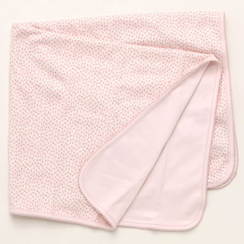 - 表側は小花柄、裏側が淡いピンク色の無地のブランケットです。