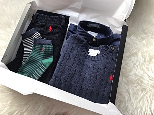 174 ギフトボックス(紺ボックス)Ralph Lauren (ラルフローレン) ベビー上下セット 18-24ヶ月コットン ツイル シャツ&紺コーデュロイ パンツ&セーター&靴下2足セット 90cm [並行輸入品]