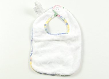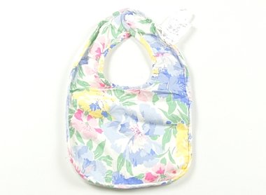 優しいパイル地と花柄ブロード。ブランドタグはすぐ外せるようになっており、リバーシブルで使えます。やや使用感がありますが目立った汚れはありません。