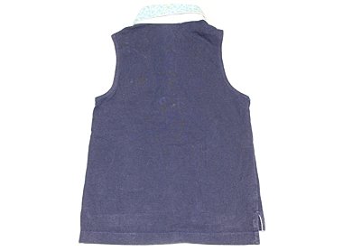全体的に色褪せ・白っぽいスレ感あり。しっかりしたカットソーにシャツ衿つきのかわいいお品です。まだまだ普段着として活躍してくれそうです。