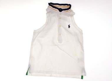 - ポロシャツ素材です。前身頃の中央から裾にかけて2cm~4cmほどの黄色い汚れが複数あります。普段着や外遊び用としていかがでしょうか?