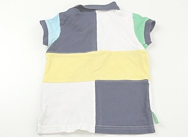 ブロックデザインのポロシャツです。白い部分に薄いシミが広がっているため星を一つ減らしています。