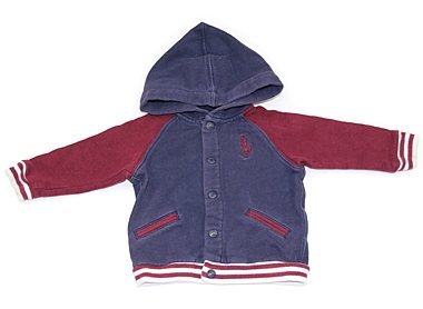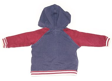 実際のサイズ表記は9M・73です。スタジャンふうのおしゃれなパーカー。色あせ・変色(ヤケ)あり。袖口黄ばみがあります。手ざわりのいい上質な生地ですので普段着としていかがでしょうか。