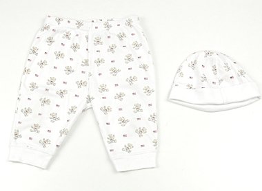 同柄の帽子とセットです。帽子のサイズは0-6M。目立った汚れのない良品です。
