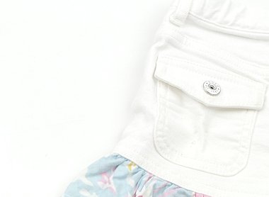 - 花柄部分に色褪せ感があり、白いジーンズ生地に複数薄茶色の汚れがあります。後ろポケット左に茶色の汚れ薄いインク汚れがあります。まだまだ普段着として活躍してくれそうです。
