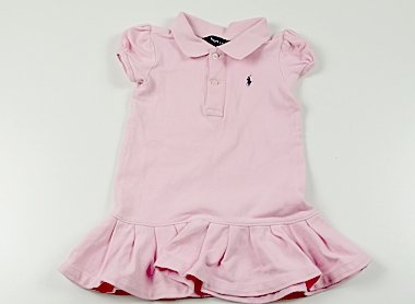 無地のポロシャツワンピース。実際のサイズ表記は12Mです。素材タグが取れかかっています。全体的に毛羽立ちがありますが目立った汚れのない良品です。