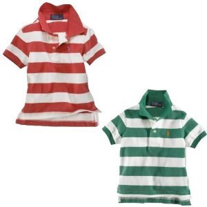 Ralph Lauren ボーダー ポロシャツ 半袖 【レッド・グリーン】 【1歳~2歳】 (並行輸入品) (12M (~1歳まで), レッド)
