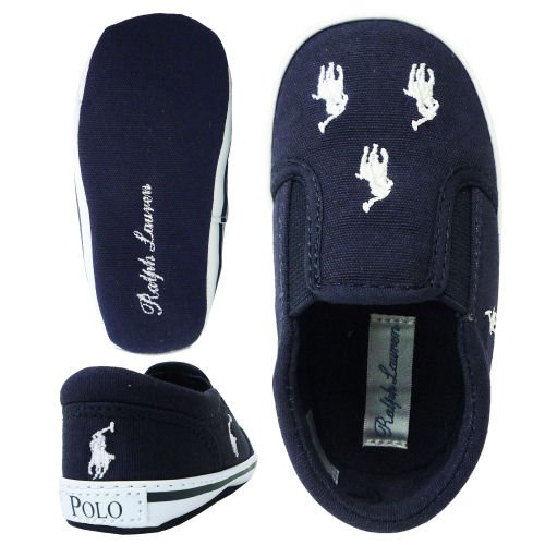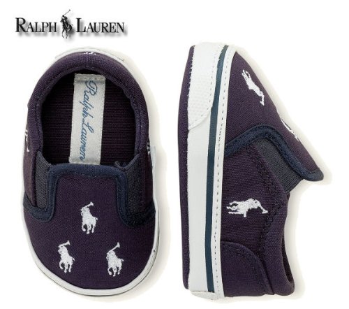 Ralph Lauren(ラルフローレン) BAL HARBOUR REPEAT LAYETTE SOFT SOLE Navy Canvas/White Ponies バル ハーバー リピート スリッポン ベビー ファーストシューズ 靴 10cm [並行輸入品]