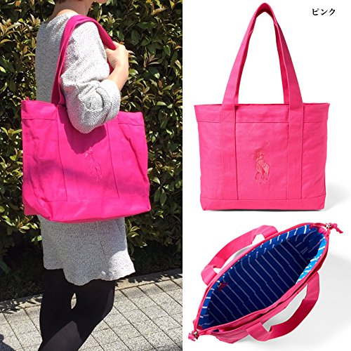 Ralph Lauren ジッパー開閉式 大きめサイズ 学校用や普段使い 旅行にも キャンバストートバッグ (ピンク(内側:ブルーストライプ))