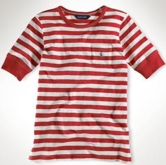 polo_ralph_lauren ラルフ ローレン Aライン ボーダーTシャツ 半袖(レッド)【月齢:2歳~3歳】(並行輸入品) (3T(3歳))