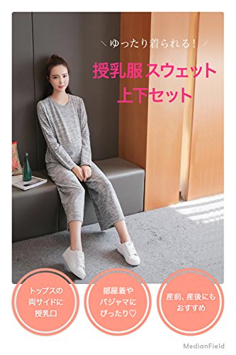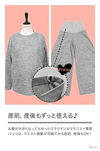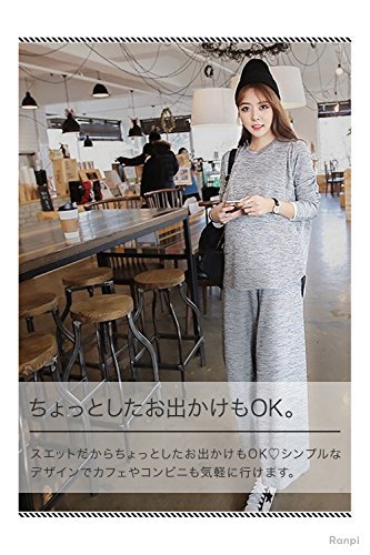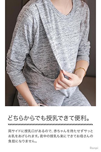 Ranpi 【 授乳服 パジャマ 上下 セット 】マタニティ スウェット 授乳 トップス 長袖 パンツ マタニティウェア 妊婦服 (L)