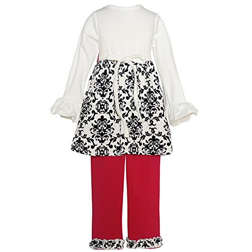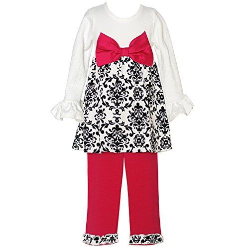 ダマスク模様がこのRARE Editionsによる、服をとても魅力的だと思います。チュニック機能アイボリー長袖とフレア袖、フクシアの蝶、で付属のウエストにキュートスクロール観賞上のパターンのブラックアイボリー。ネクタイ付きでバックすることはできません。おそろいのパンツはフリルにパターン脚の下部に表示されます。