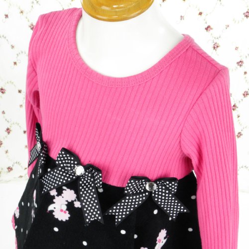 ピンクプードルとホワイトドット柄のチュニックワンピースとレギンス(ブラック)のセットです。 ボディ部分はフーシャカラーのリブ編みニット、スカート部分は、コーデュロイとなっております。 胸元部分にはブラック&ホワイトプチドットのリボン&クリスタルが付き、華やかさをアップ。 スカートとレギンスの裾には、フーシャ&ホワイトプチドットのフリル&リボン付きです。 クリスマスの贈り物にもオススメです!