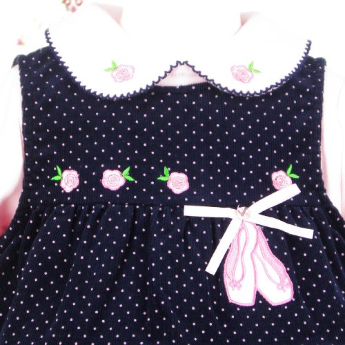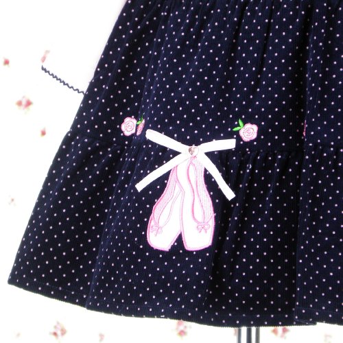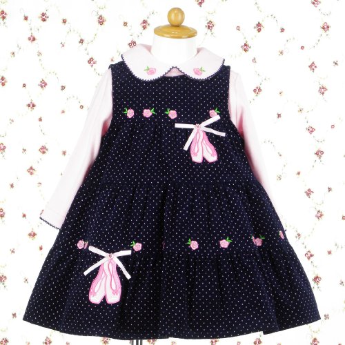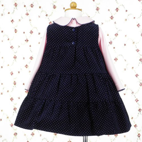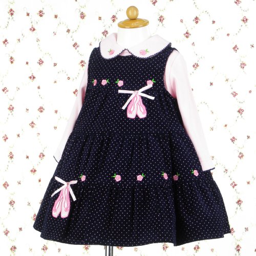 ネイビー&ピンクプチドット☆コーデュロイのワンピースとインナーのセットです。 3段切り替えのワンピースはボリューム感があります。 バレリーナシューズとお花の刺繍が前身ごろ全体に施され、バレリーナシューズには、ピンクリボン&ピンクのラインストーンが付いております。 インナーは、肌触り良いピンクのピーターバン襟のボディーシャツです。襟元のお花の刺繍が華やかさをアップ。襟&袖のネイビーの縁取りがアクセントに。 クリスマスの贈り物にもオススメです! ☆海外ブランドと日本ブランドとの大きな相違点は≪見た目のデザイン性≫を重視している点です。 ☆その為、日本製に比べて[縫製が少々甘い物] [糸の不始末] [輸送時のわずかな汚れ] [インナー等へのわずかな色移り]などがある場合があります。 ☆また、商品画像の色については、ご覧になるモニターやブラウザなどによって若干の違いが生じる場合がございますので、ご了承ください。