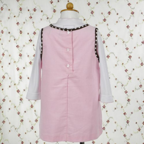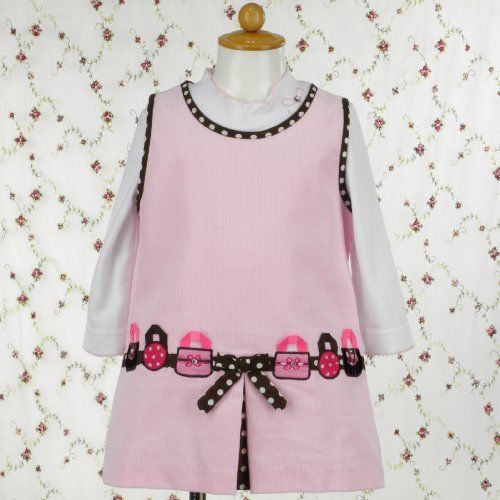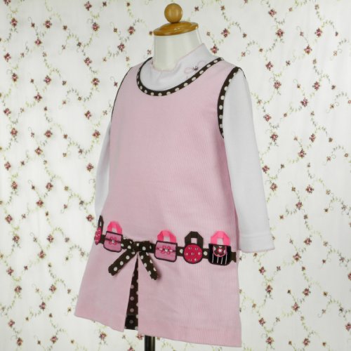 ベビーピンクとブラウン&ホワイトドット☆コーデュロイのボックスワンピースとインナーのセットです。 ローウェストの切り替え部分には、思わず持ってお出かけしたくなるような、おしゃれなハンドバック(刺繍)が並んでおります。 スカートのプリーツ部分は、ブラウン&ホワイトドットの生地で、動くたびに見え隠れします。 襟&袖部分にもブラウン&ホワイトドット生地が使われており、アクセントになっております。 インナーは、肌触りの良いボディーシャツです。襟部分のリボン刺繍&ラインストーンでかわいらしさアップ。 クリスマスの贈り物にもオススメです! ☆海外ブランドと日本ブランドとの大きな相違点は≪見た目のデザイン性≫を重視している点です。 ☆その為、日本製に比べて[縫製が少々甘い物] [糸の不始末] [輸送時のわずかな汚れ] [インナー等へのわずかな色移り]などがある場合があります。 ☆また、商品画像の色については、ご覧になるモニターやブラウザなどによって若干の違いが生じる場合がございますので、ご了承ください。