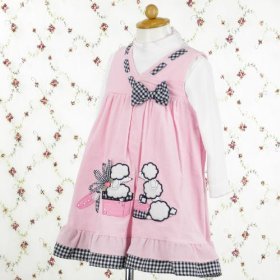 Rare Editions 24ヵ月 (レアエディションズ) 3匹のプードル ベビーピンク&ギンガムのコーデュロイワンピースセット (24M 90cm)