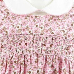 Rare Editions 18ヵ月 (レアエディションズ) ピンク小花柄 コーデュロイスモッキングワンピースセット(アイボリー)(18M 85cm)