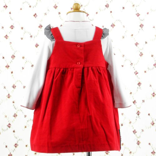 Rare Editions 18ヵ月 (レアエディションズ) テリア柄&ギンガム コーデュロイワンピースセット(レッド)(18M 85cm) [Baby Product]