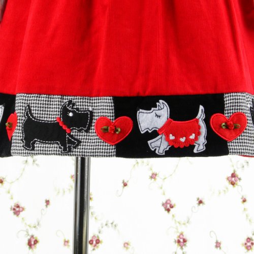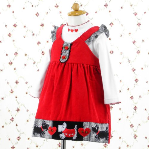 テリア柄&ギンガム コーデュロイワンピースとインナーのセットです。 裾には、テリア&ハートのアップリケが付いております。 肩と胸元のギンガムが、レッドカラーを引き立たせます。 インナーは肌触りの良いボディーシャツ。3個のハートの刺繍がキュートです。 クリスマスの贈り物にもオススメです! ☆海外ブランドと日本ブランドとの大きな相違点は≪見た目のデザイン性≫を重視している点です。 ☆その為、日本製に比べて[縫製が少々甘い物] [糸の不始末] [輸送時のわずかな汚れ] [インナー等へのわずかな色移り]などがある場合があります。 ☆また、商品画像の色については、ご覧になるモニターやブラウザなどによって若干の違いが生じる場合がございますので、ご了承ください。