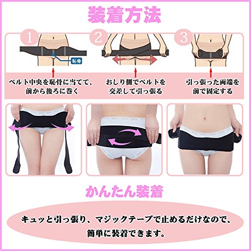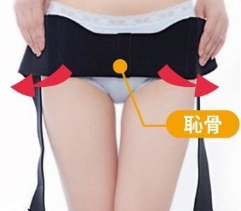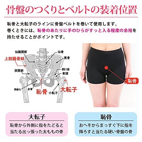 恥骨と大転子のラインに骨盤ベルトを巻いて使用します。
