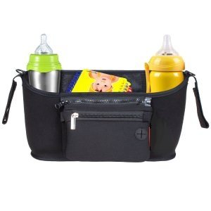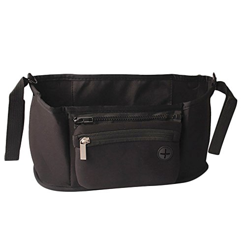 (Rarihima)ベビーカー用バック ドリンク ホルダー 多機能小物入れ (ブラック)